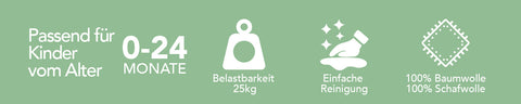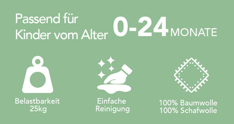 - 🌬️ Natürliche Temperaturregulierung: Schafwolle sorgt für eine ideale Luftzirkulation und hält Ihr Baby stets wohltemperiert, ohne Überhitzung oder Kälte.