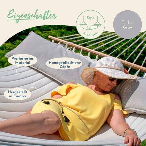 Genieße höchsten Komfort und stilvolle Entspannung mit unserer Luxus-Stabhängematte. Sie bringt den amerikanischen Outdoor-Flair direkt in deinen Garten oder auf die Terrasse. 🌿🏡