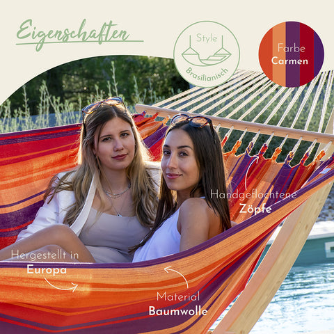 Die Carmen Kingsize Familien-Stabhängematte ist nicht nur ein Möbelstück, sondern ein Ort für Begegnungen und Freude. Gönnen Sie sich und Ihrer Familie ein Stück Luxus und genießen Sie die kleinen Momente des Lebens in dieser stilvollen und komfortablen Hängematte.