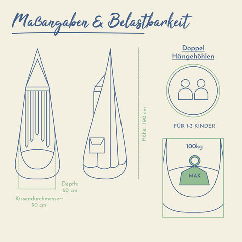 - 🤸 Großzügiger Platz für doppelten Spaß: Mit ausreichend Platz für zwei Kinder bietet die Hängehöhle Raum für fantasievolles Spiel, gemeinsames Kuscheln und entspanntes Lesen – ideal für doppelte Freude!