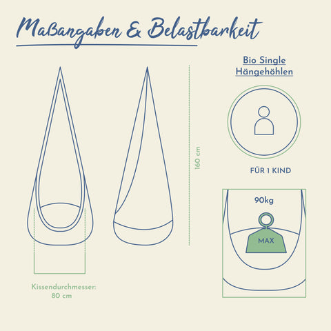 Sollte die Hängehöhle einmal im Regen hängen bleiben, ist es wichtig, sie danach vollständig trocknen zu lassen. Andernfalls kann die Langlebigkeit des Produkts nicht garantiert werden, und aufgrund des natürlichen Baumwollstoffes besteht das Risiko der Schimmelbildung.