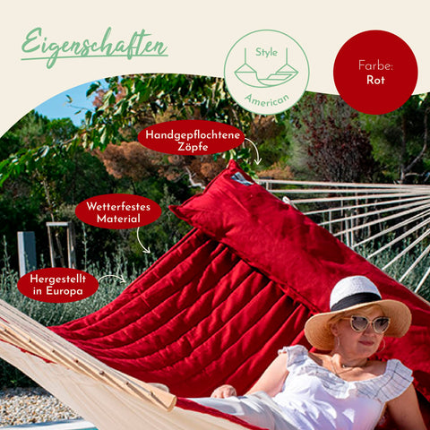 Luxushängematte American Fuego-Red mit Lärchenholzgestell – Ihre Oase der Entspannung