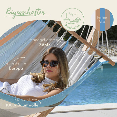 Stabhängematte Havanna Blue mit verstellbarem Metallgestell – Ihr farbenfrohes Refugium der Entspannung