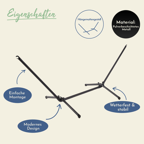 • ⚖️ Stabil und anpassbar: Mit einer Tragfähigkeit von bis zu 150 kg ist das Gestell die ideale Unterstützung für Ihre Hängematte. Es bietet eine perfekte Lösung für entspannte Stunden im Freien.