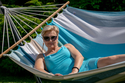 Die Doppel-Stabhängematte Havanna Blue ist nicht nur ein stilvolles Möbelstück, sondern auch ein Ort der Ruhe und Entspannung. Genieße die Natur und gönn dir eine Auszeit in deiner neuen Lieblingshängematte, die Komfort, Qualität und Nachhaltigkeit perfekt vereint.